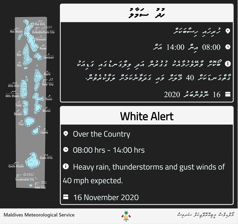 މޫސުން ގޯސްވެ މުޅި ރާއްޖެއަށް ވައިޓް އެލަރޓް ނެރެފިއެވެ.