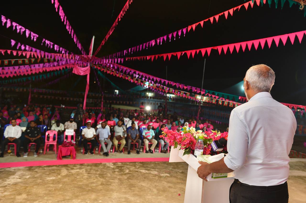 "ރާއްޖޭގެ އިގްތިސާދު އަޅުގަނޑުމެން ކުރިއަރުވައި ކޮޅަށް ޖަހައި ކުރިއަށް ގެންދަން ހުށަހަޅާ ހުށަހެޅުމުގެ ތެރެއިން އިރާދަކުރެއްވިއްޔާ މި ހުރިހާ މަސައްކަތްތެރިންގެ މުސާރަ އާއި އެލަވަންސްތަކަށް ހެޔޮ ބަދަލުތަކެއް އަޅުގަނޑުމެންގެ ފަސް އަހަރު ގެނެސްދޭނަން."