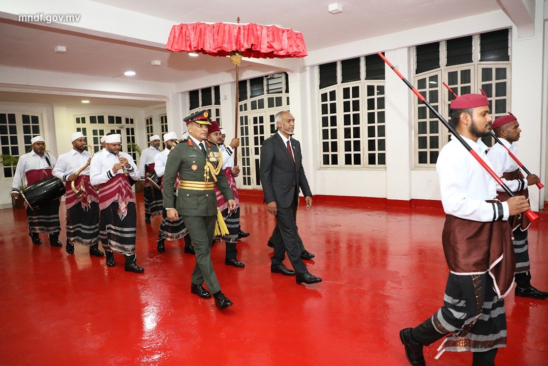 ބަންޑާރަކޮށްޓަށް ކުރެއްވި ޒިޔާރަތުގައި ރައީސް މުއިއްޒު ވަނީ އެމްއެންޑީއެފްގެ ޖެނެރަލް އޮފިސަރުންނާއި ސީނިއާ އޮފިސަރުންގެ އިތުރުން އެންލިސްޓެޑް ސިފައިންނާ ބައްދަލު ކުރައްވައިފައެވެ.