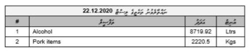މި ތަކެއްޗަކީ ކަސްޓަމްސްގެ އާންމު ޤަވާއިދުގެ 269 ވަނަ މާއްދާގެ ދަރީން ބޮންޑެޑް ވެއަރހައުސްގައި ހުންނަ މުދާ ހަލާކުވުމުން ނުވަތަ މުއްދަތު ހަމަވުމުން ނުވަތަ މިނޫންވެސް ސަބަބަކާހުރެ ނައްތާލުމުގައި ކަސްޓަމްސްއިން ޢަމަލުކުރާ އުޞޫލުގެ ދަށުން ނައްތާލެވުން ތަކެތިކަމަށް ކަސްޓަމަސް އިން ބުނެއެވެ.