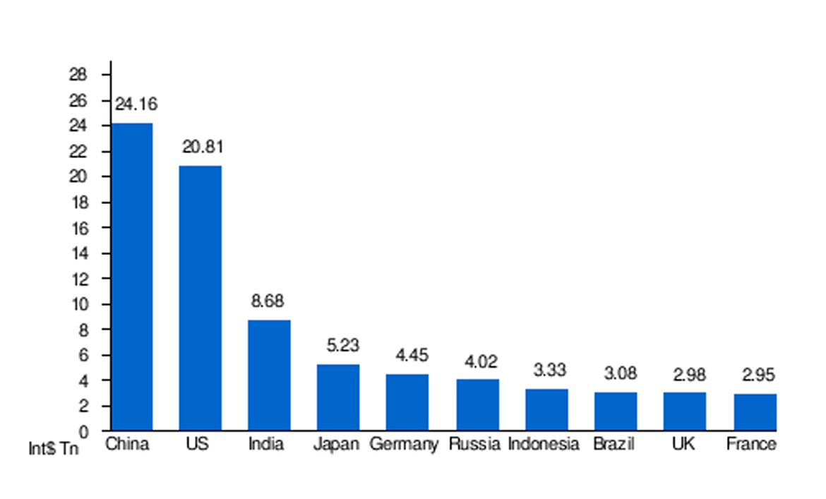 އައިއެމްއެފުން ބުނާގޮތުގައި ގައުމެއްގެ އުފެއްދުންތެރިކަން ހުރި މިންވަރު އެންމެ ރަނގަޅަށް ވަޒަންކޮށްލެވޭނީ ޕީޕީޕީ މިންގަނޑުން ބަލައިގެންނެވެ. މި މިންގަނޑުން ބަލަނީ ނަމަ 2018 ވަނަ އަހަރުން ފެށިގެން ދުނިޔޭގެ އެންމެ ބޮޑު އިޤްތިޞާދަކީ ޗައިނާއެވެ. ދެވަނާގައި އެމެރިކާ އަދި ތިން ވަނާގައި އޮތީ އިންޑިއާއެވެ. ނަމަވެސް އާންމު ޖީޑީޕީ މިންގަނޑު އެމްއީއާރުން ބަލާނަމަ ދުނިޔޭގެ އިޤްތިޞާދުން ޗައިނާ ދެވަނައިގާ އޮތްއިރު އިންޑިއާ އޮތީ 6 ވަނައަށެވެ.
