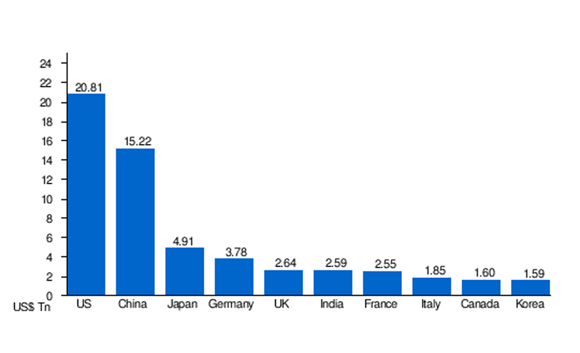 އިންޓަރނޭޝަނަލް މަނިޓަރީ ފަންޑު، އައިއެމްއެފުން މިދިޔަ ހަފްތާގައި ނެރުނު "ވޯލްޑް އިކޮނޮމިކް އައުޓްލުކް 2020″ ގެ ހިސާބުތަކަށް ބަލާއިރު ދުނިޔޭގެ އެންމެ ބޮޑު ދެ އިޤްތިޞާދަކީ އެމެރިކާ އާއި ޗައިނާއެވެ. އަދި އެ އަދަދުތަކުން މިހާރު ހާމަވާގޮތުގައި އެމެރިކާގެ އިޤްތިސާދު ފަހަތަށް ޖައްސާލުމަށްފަހު ދުނިޔޭގެ އެންމެ ބޮޑު އިޤްތިޞާދަކީ ޗައިނާއެވެ. ރިޕޯޓުގައި ވާ އަދަދު ތަކަށް ބަލާއިރު ޗައިނާގެ އިޤްތިޞާދު ނުވަތަ އުފެއްދުންތެރިކަން ހުރި މިންވަރު ޖީޑީޕީ އަކީ 24.2 ޓްރިލިއަން އެމެރިކާ ޑޮލަރެވެ. އަދި އެމެރިކާގެ އިޤްތިޞާދަކީ 20.8 ޓްރިލިއަން އެމެރިކާ ޑޮލަރެވެ. އެމެރިކާގެ އިޤްތިސާދުގެ ގާތްގަނޑަކަށް 6 ބައިކޮށް އެއްބައި ޗައިނާއިން މިވަނީ ކުރިއަށް ޖެހިލާފައެވެ. ނަމަވެސް މިވާހަކަ މާ އަޑު ހަރުކޮށް ދައްކާކަށް ގިނަ ބަޔަކު ބޭނުމެއް ނުވެއެވެ. ދުނިޔޭގެ މީޑިއާ ތައްވެސް އޮތީ ހަމަ ހިމޭނުންނެވެ.