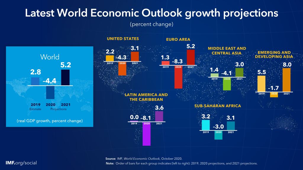 މިގޮތުން، މިހާތަނަށް ހެދިފައިހުރި ދިރާސާތަކުން ދައްކާފައިވާ ގޮތުގައި، ކޯވިޑް19ގެ އާލަމީ ވަބާގެ ސަބަބުން 2020 ވަނަ އަހަރު މުޅި ދުނިޔޭގެ އިގްތިސާދުގެ ދުވެއްޔަށް %4.5- އާއި %6.0- އާއި ދެމެދުގެ މިންގަޑުން މަޑުޖެހުން އައެވެ.
