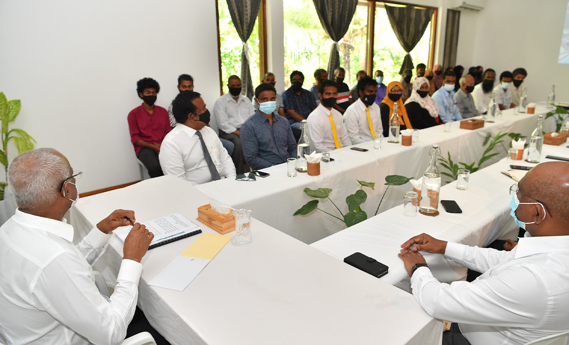 ރައީސް މިހެން ވިދާޅުވީ އިއްޔެ ހަނިމާދުއަށް ކުރެއްވި ދަތުރުފުޅު ނިންމާލެއްވުމުގެ ކުރިން، އެރަށުގެ ބައެއް ރައްޔިތުންނާއި ޖަމިއްޔާތަކުގެ ބޭފުޅުންނާއި ބައްދަލުކުރައްވާ ދެއްކެވި ވާހަކަފުޅުގައެވެ. އުތުރުގެ 3 ރަށަކަށް ރައީސް ކުރެއްވި ދަތުރުފުޅުގެ ތެރެއިން ފަހު މަންޒިލަކަށް ހަނިމާދޫއަށް ވަޑައިގެން އެރަށުގެ ބައެއް މީހުންގެ ބޮޑު ކަނބޮޑުވުމެއްގެ ގޮތުގައި ފާހަގަކުރެވޭ ހަނިމާދޫ އެއަރޕޯޓަށް އަލަށް އިތުރުކުރެވޭ ބިމުގެ މައްސަލާގައި ރައްޔިތުން އެދޭގޮތް ހޯއްދެވުމުގެ ގޮތުން ރައީސް ވަނީ މަޝްވަރާކުރައްވާފަ އެވެ. މި ބައްދަލުކުރެއްވުން އޮތީ ހަނިމާދޫގައި ހުންނަ ބެއަރފޫޓް ހޮޓެލްގައެވެ.