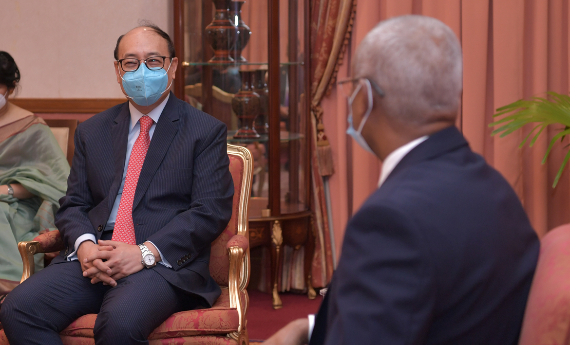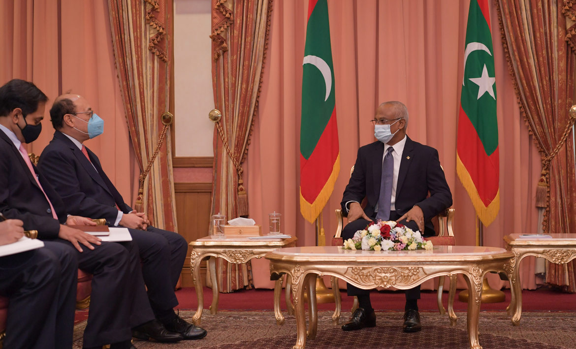 ރައީސުލްޖުމްހޫރިއްޔާ އިބްރާހީމް މުޙައްމަދު ޞާލިޙް އިންޑިއާގެ ފޮރިން ސެކްރެޓަރީއާ ބައްދަލުކުރެއްވުން – ފޮޓޯ: ރައީސް އޮފީސް