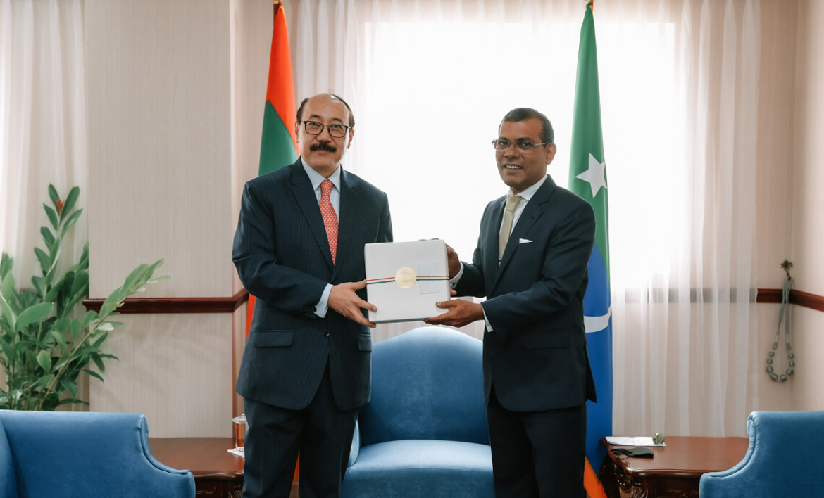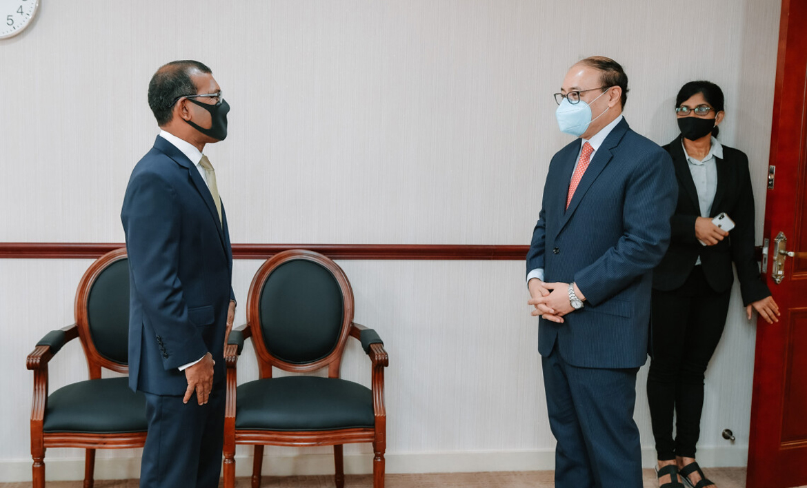 ރައްޔިތުންގެ މަޖިލީހުގެ ރައީސް މުޙައްމަދު ނަޝީދު އިންޑިއާގެ ފޮރިން ސެކްރެޓަރީއާ ބައްދަލުކުރެއްވުން – ފޮޓޯ: މަޖިލިސް