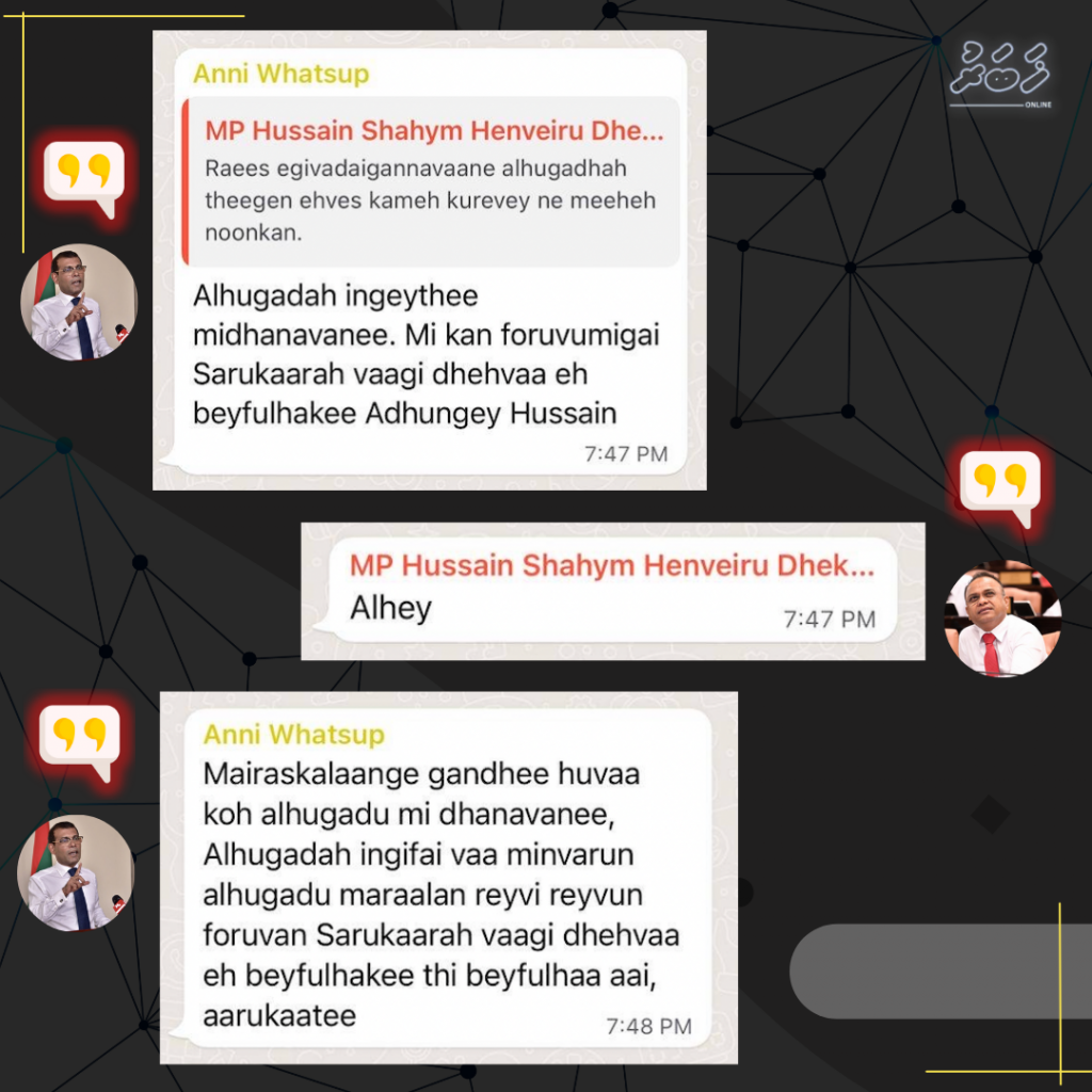 – ވަޓްސްއަޕް ގުރޫޕުގައި ނަޝީދުގެ ތުހުމަތުތަކަށް ޖަވާބު ދެއްވަމުން އަނދުން ހުސެއިން ވިދާޅުވެފައި ވެއެވެ.