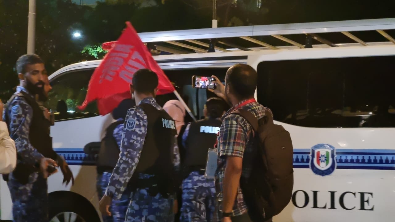 ހުޅުމާލޭގައި ހުންނަ އިންޑިއާ ހަކޮމިޝަން ދިރިއުޅުއްވާ ފްލެޓް ކައިރީގައި ކުރަމުންދާ އިހުތިޖާޖުގައި ބައިވެރިވާ މީހުން ހުއްޓުވުމަށް ގިނަ އަދަދެއްގެ ފުލުހުން ދަނީ ހަރަކާތްތެރިވަމުންނެވެ. އެއްވި މީހުން ތިބީ އިންޑިއާ އައުޓް ބެނާތަކާއި ދިދަތައް ހިފައިގެންނެވެ. އިދިކޮޅު ކޯލިޝަނުން މާލޭގައި މިފަހަކަށް އައިސް ހިންގާ އިންޑިއާ އައުޓް ހަރަކާތުގައި ގިނަ ބަޔަކު ހައްޔަރުކޮށް ބާރުގެ ބޭނުންކޮށްގެން މުޒާހަރާތައް ރޫޅާލައެވެ.