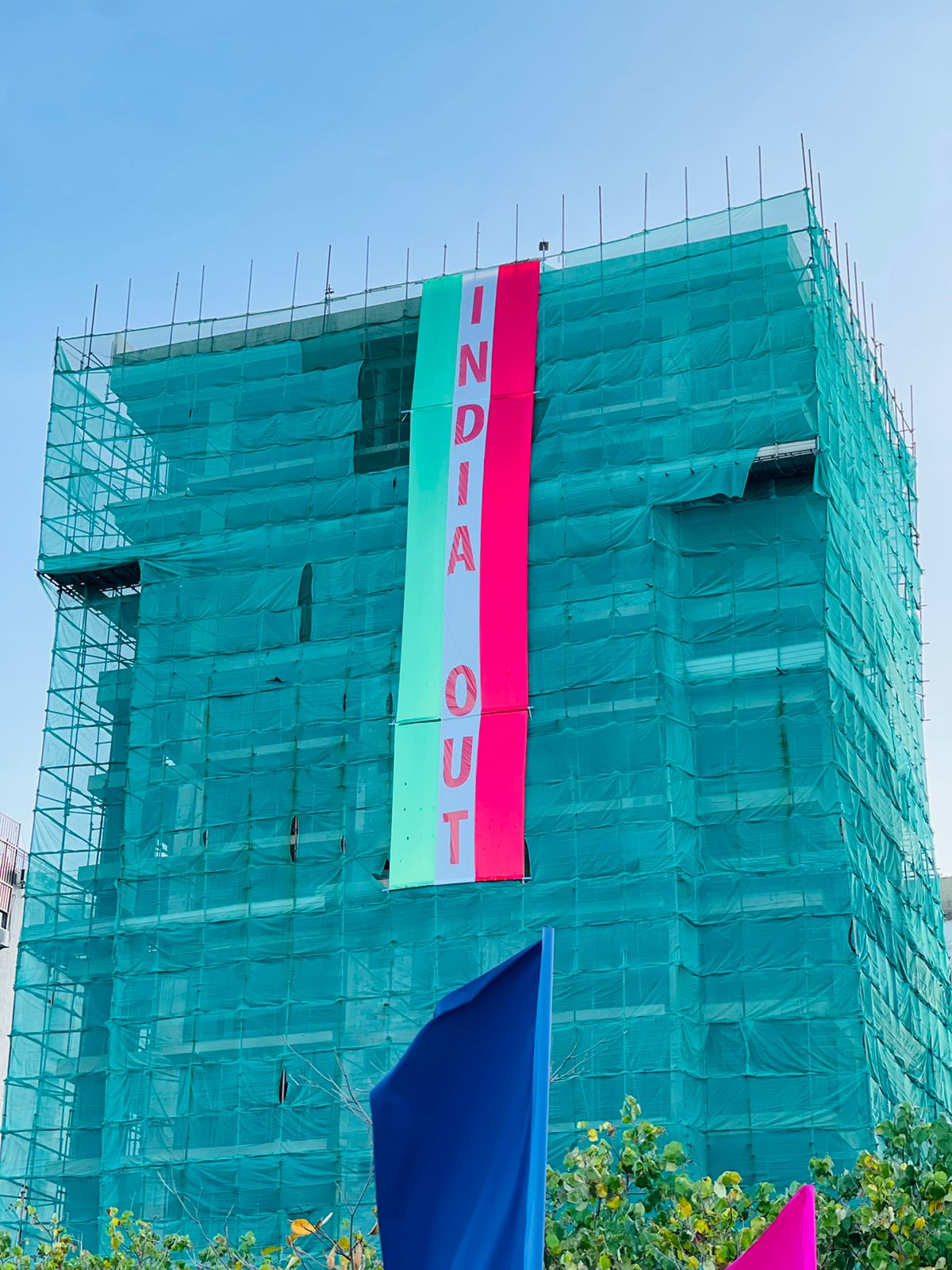 ފުލުހުން ބުނީ ކޯޓު އަމުރަކާ އެކީ ދޫވެއްސަށް ވަނީ "އިންޑިއާ އައުޓް" ޖަހާފައިވާ ބެނާގެ ސަބަބުން މީހުންގެ ތެރޭގައި ބިރުވެރިކަން އުފެދޭތީ ކަމަށެވެ. އަދި ބެނާ ނަގަން އެންގުމުން ނުނަގާ ހުރުމަކީ ކުށަކަށްވާތީ ހެކި ހޯދުމަށް ކަމަށެވެ. އެކަމަކު އެ ބެނާ ނޫން އިތުރު ހެއްކެއް ހޯދާފައި ނުވާނެ ކަމަށާއި މީހަކާ ސުވާލުކޮށް ބަޔާން ނަގާފައިވެސް ނުވާނެ ކަމަށް ބުންޏެވެ. އަދި ގާނޫނީ އިންޒާރު ދީފައި ނުވާނެ ކަމަށްވެސް ބުންޏެވެ.