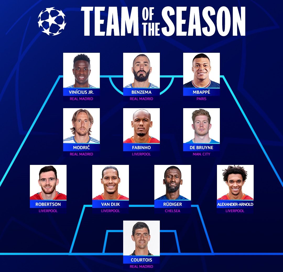 ޔުއެފާގެ ޓެކްނިކަލް އޮބްޒާވާ ޕެނަލްއިން ހޮވި 22-2021 ވަނަ ސީޒަންގެ ޗެމްޕިއަންސް ލީގްގެ "ޓީމް އޮފް ދަ އިޔާ" އަކީ: